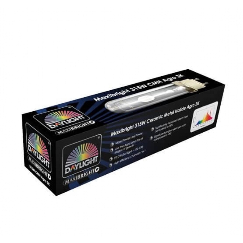 The new Maxibright CMH Agro 3k Lamp enables growers to provide crops the powerful spectrum closet to natural sunlight. Ceramic Metal Halide (CMH) Lamps emit ultra violet rays UVA and UVB - both assist in increasing your plants aromas, flavours and overall yields. The lamps are specifically designed to run only with a Maxibright Daylight or any other magnetic low frequency ballast.