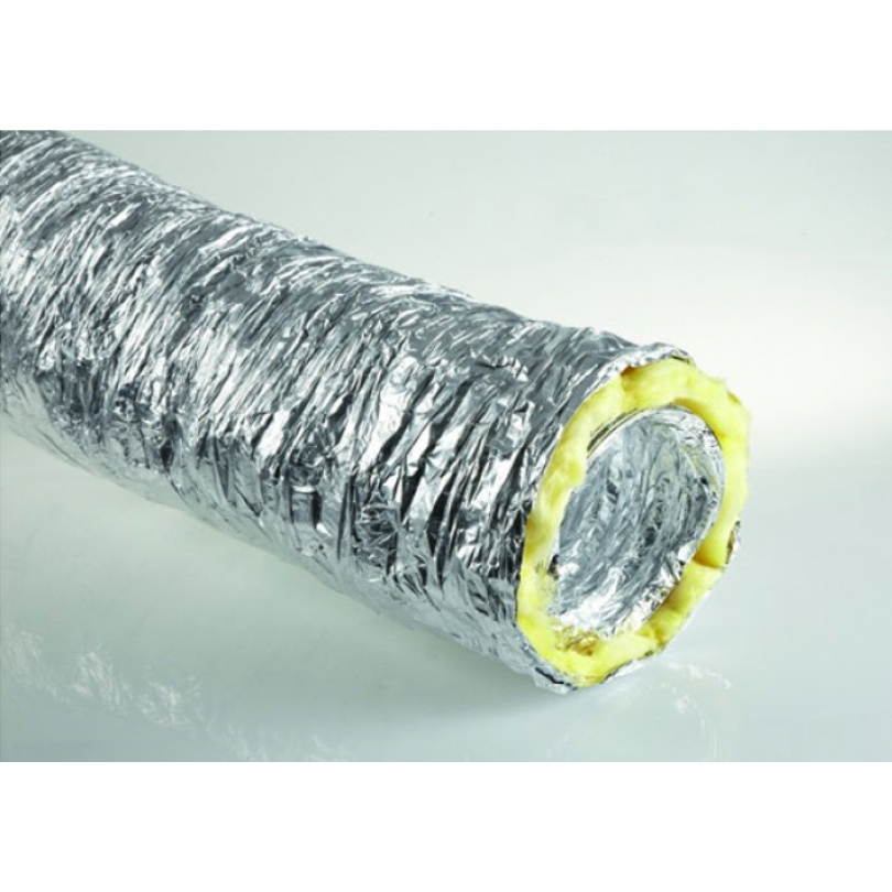 Constructed using micro perforated inner ducting to dampen noise and an acoustically transparent inter-liner which acts as a vapour barrier, this ducting has 25mm fibrewool insulation and is covered with an outer jacket, which is a multi-layer Aluminium/PET mix offering great flexibility and strength.