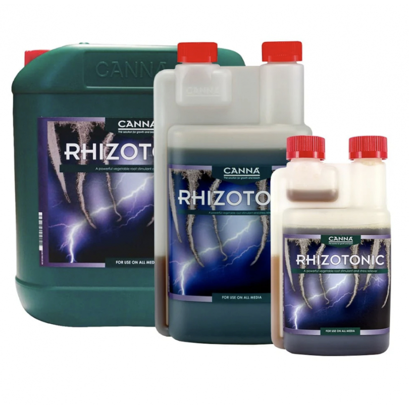 CANNA RHIZOTONIC is a powerful, algae based, vegetative stimulator for roots of fast-growing plants that already have roots or root initials. RHIZOTONIC stimulates further root development, increases the plant’s resistance to disease and promotes its inner and outer strength. RHIZOTONIC is 100% natural, and contains multiple vitamins. RHIZOTONIC influences the root environment and is the ideal supplement for the crop environment created by the grower. RHIZOTONIC has a calming effect on plants, and is ideally suited for use when shipping or re-potting plants. RHIZOTONIC will also improve plants that are unhealthy or poorly developed. RHIZOTONIC can be used regardless of the type of medium. It is suitable for cultivation in potting mix and hydro culture. RHIZOTONIC is often sprayed on leaves and can be used as a simple means for raising the pH level in fertilizer tanks. Root stimulant