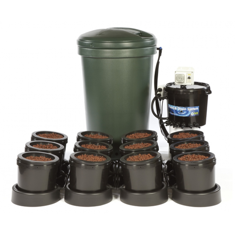 The IWS Flood and Drain System is a highly developed hybrid ebb and flow system, which works by flooding from the bottom of each individual 10.3 litre pot.